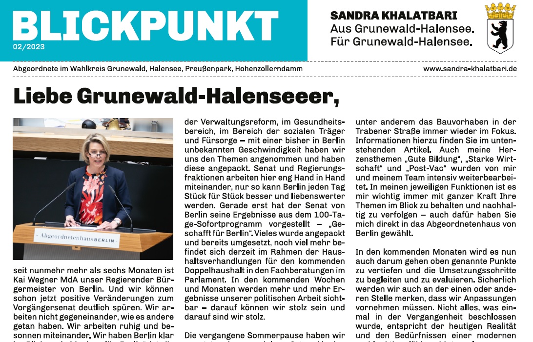 Neues aus Grunewald, Halensee, Preußenpark und Hohenzollerndamm.